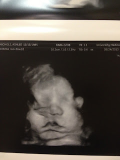 Here are pics from her 36 week sonogram! Chunky Monkey! She is measuring in the 50th percentile and weighed 6 lbs 7 ounces! Everything looked great! She even went tee-tee while we were watching her! So crazy!!