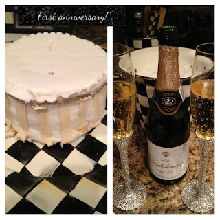 Celebrated our 1st anniversary by eating our cake and drinking champagne from our honeymoon!