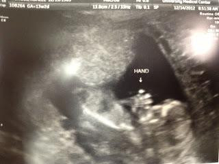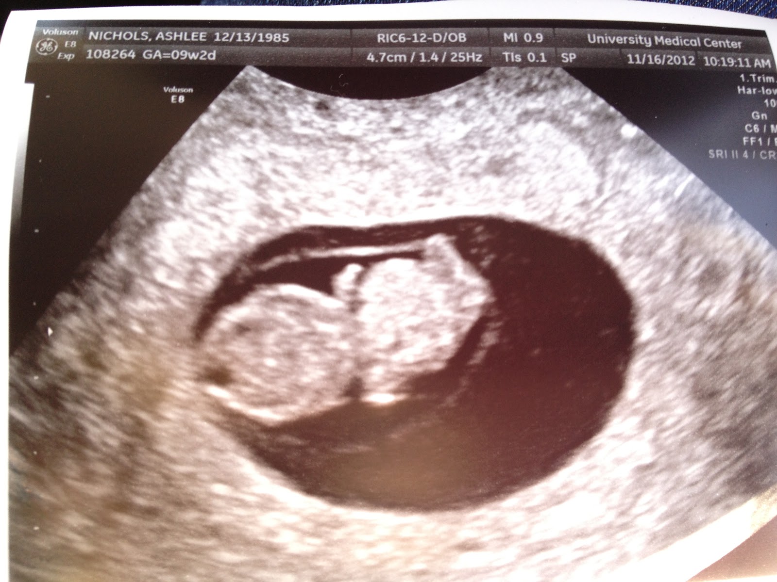 Baby Nichols’ first picture at 9 weeks.