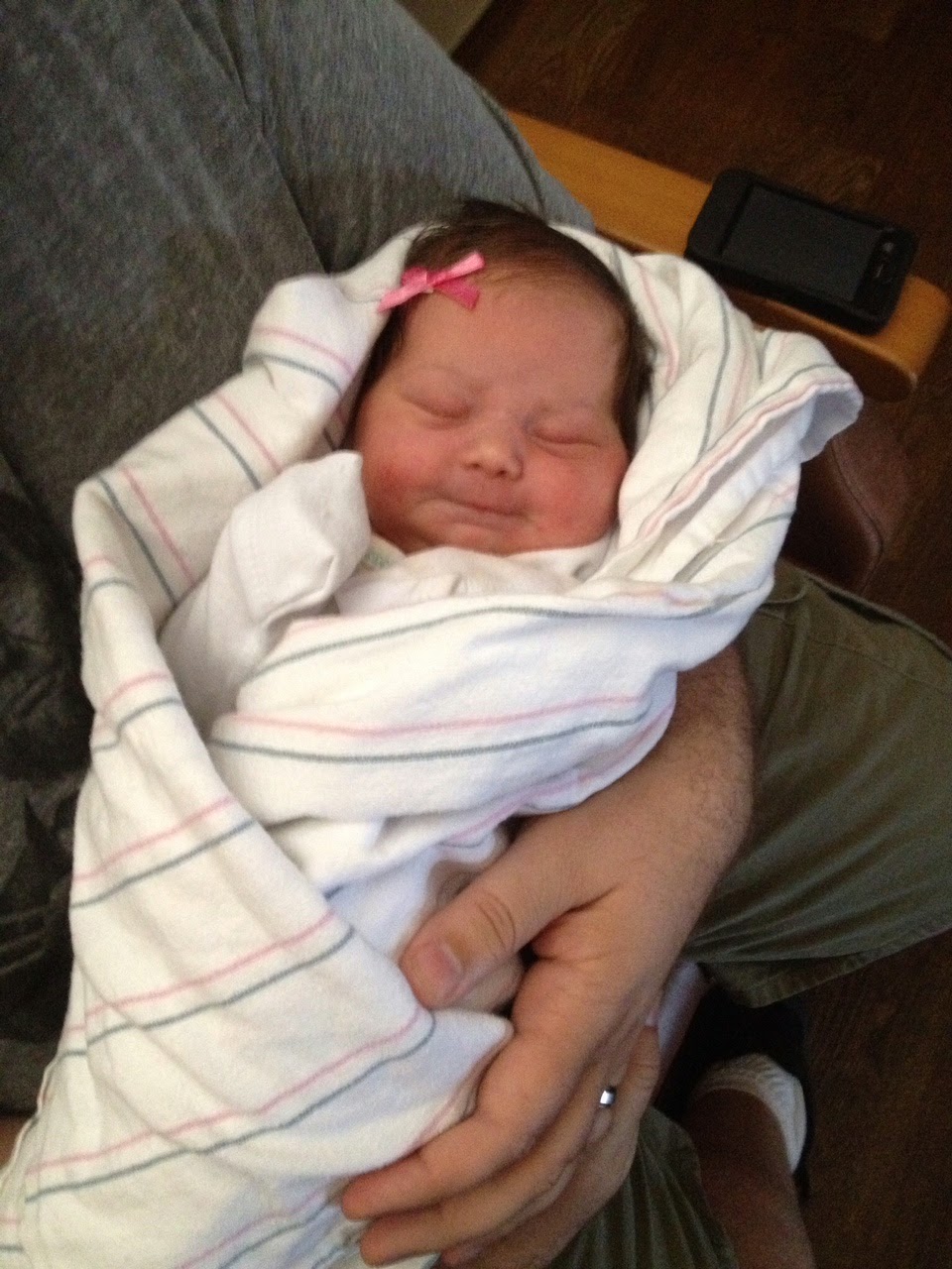 I had great plans when I FINALLY had a baby of the things I did and did not want…one of which was eye drops right after birth. Since I was not there during her birth, she got them. Notice her big fat, red eyes.