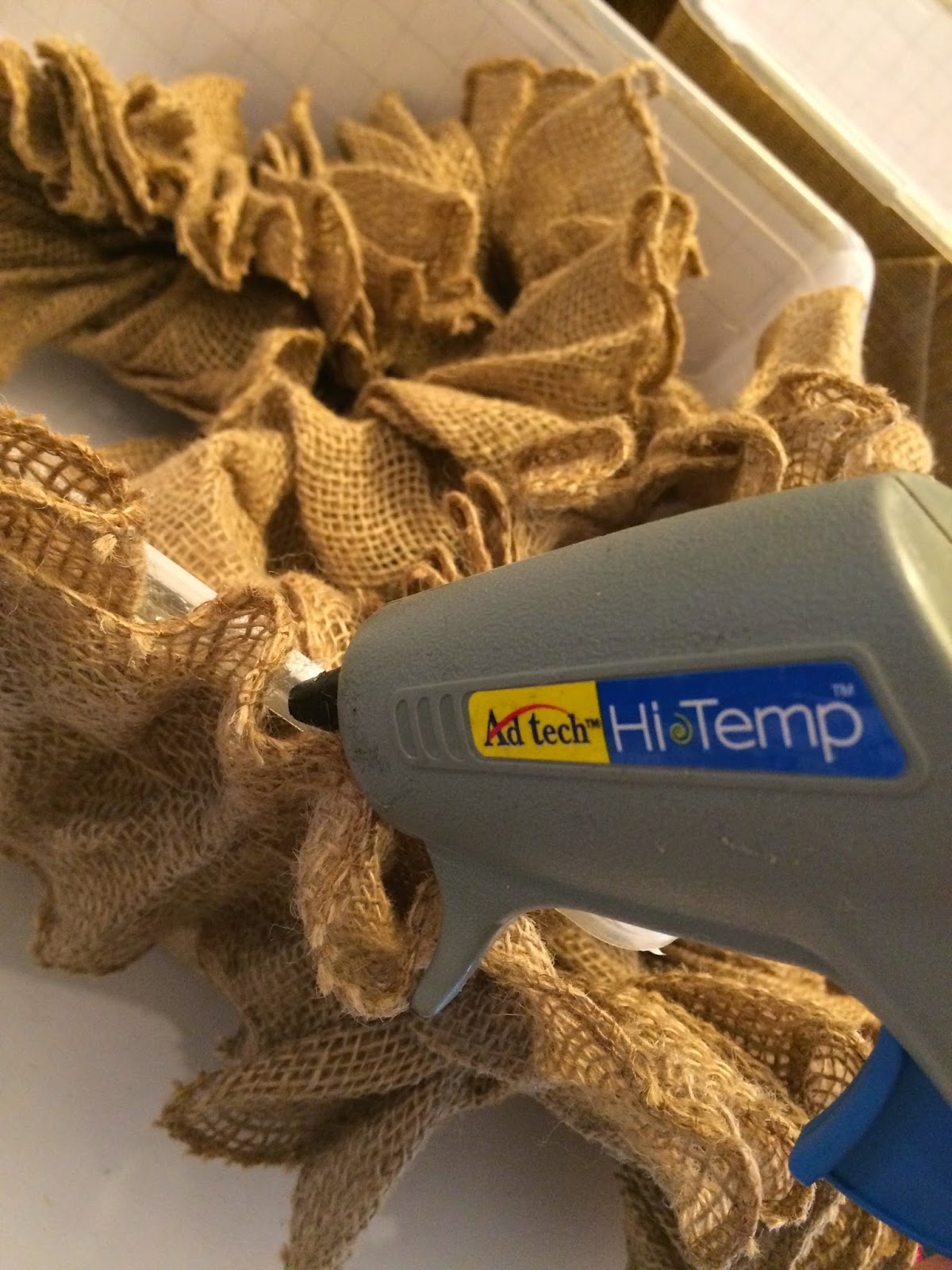 First, you’re going to want to wrap your boxes so it doesn’t show through the burlap. If you’re covering them in fabric, you won’t need to do this step unless whatever is on the box shows through the fabric.