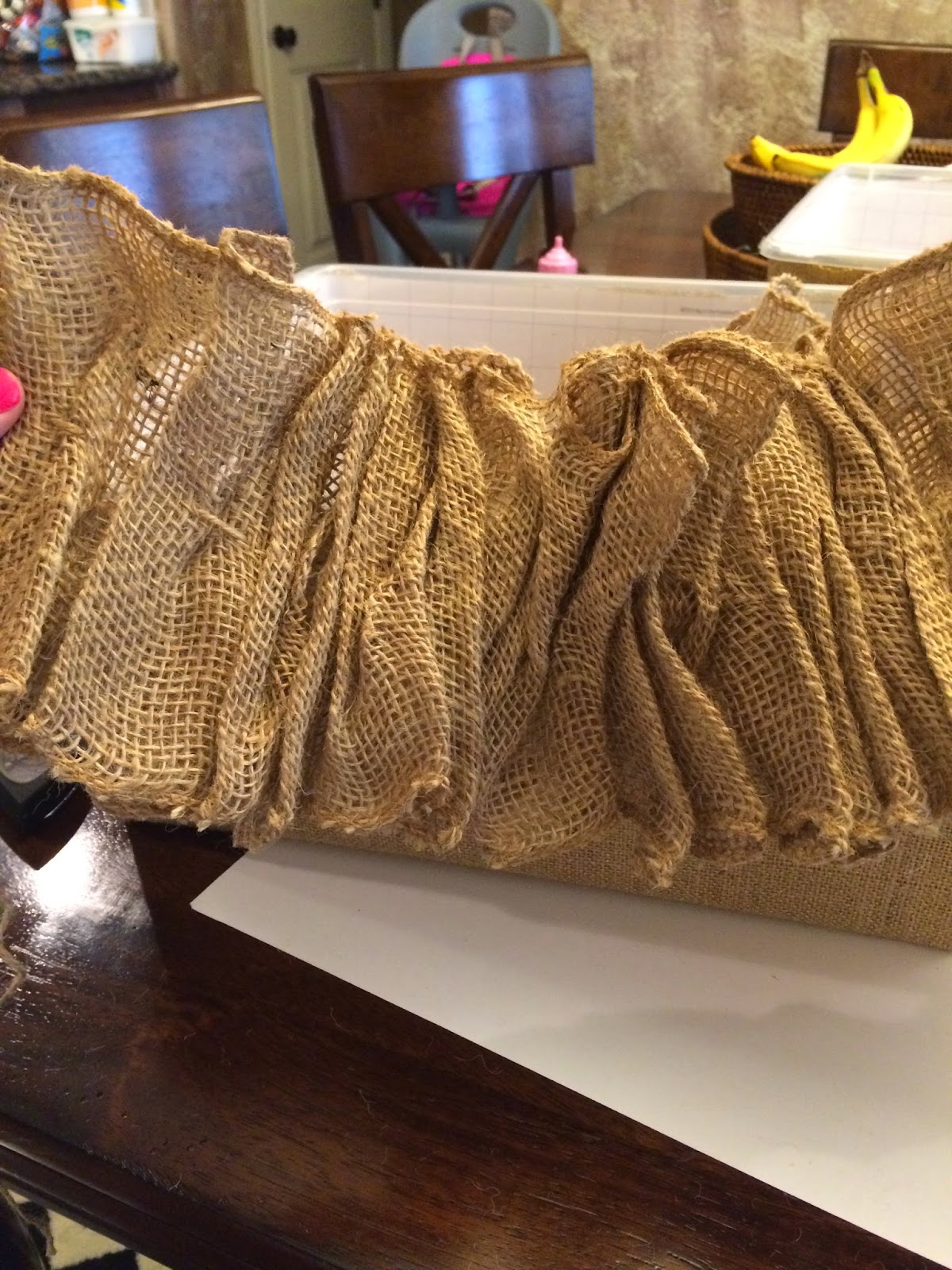 First, you’re going to want to wrap your boxes so it doesn’t show through the burlap. If you’re covering them in fabric, you won’t need to do this step unless whatever is on the box shows through the fabric.