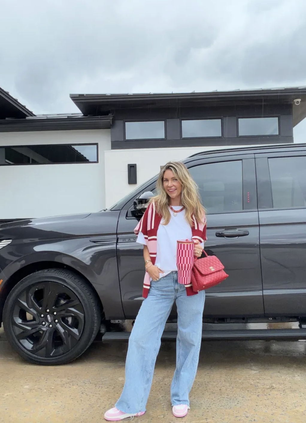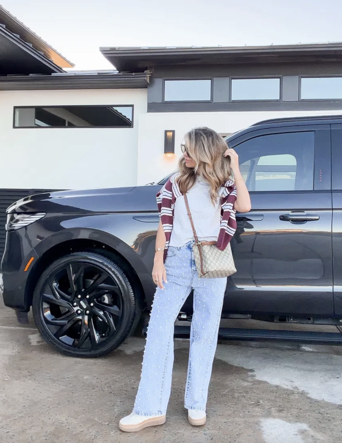 jeans // tee // sweater // sneakers // bag // sunglasses