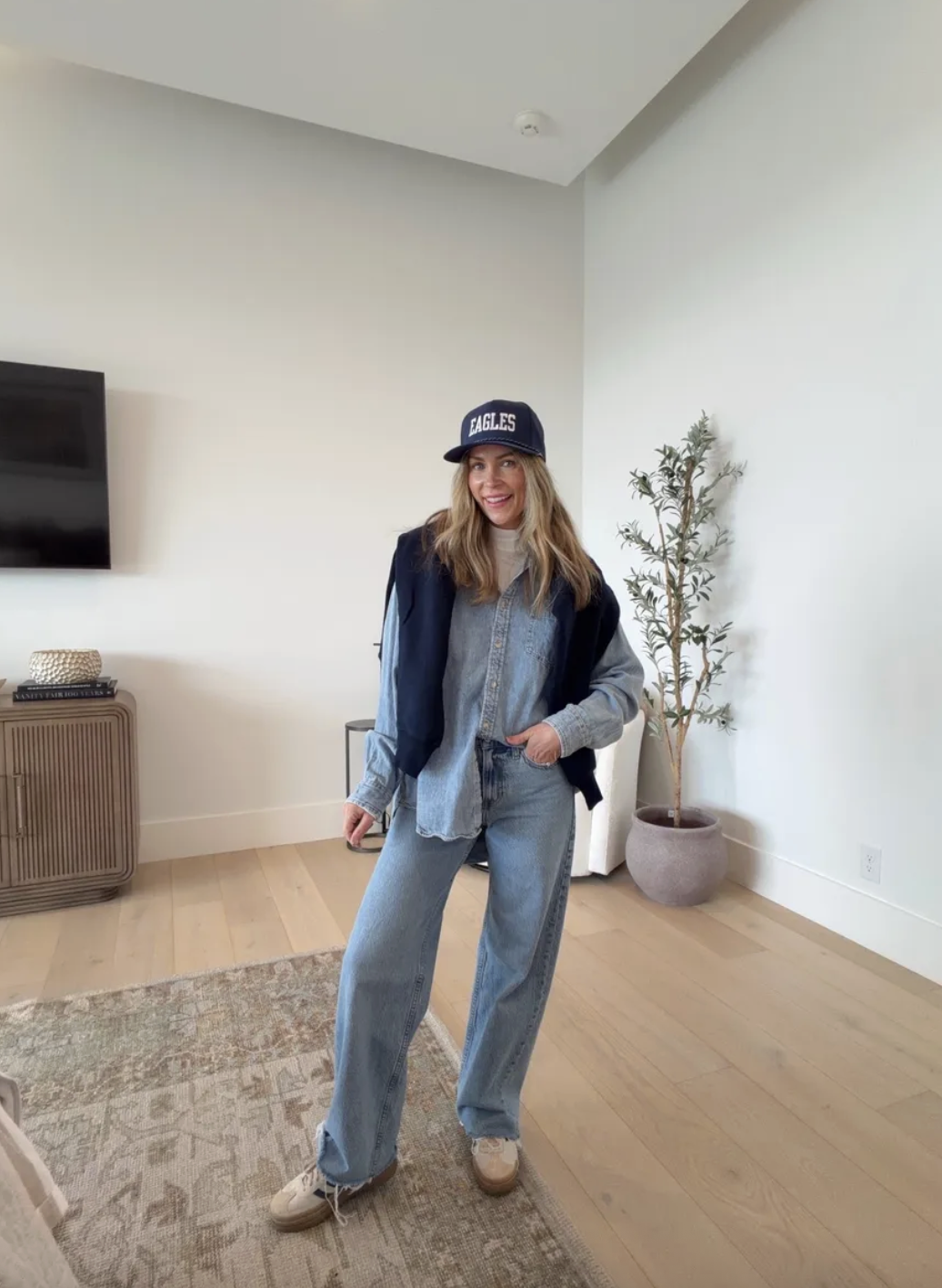 jeans // tee // boots // necklace // hoodie insert // blazer