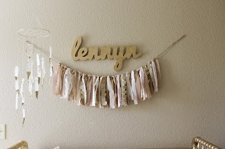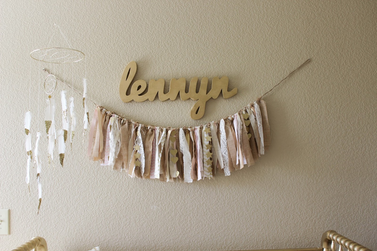 Lennyn’s nursery is mostly decorated in neutrals but accented with gold, burlap, lace and other girly neutrals. I love how everything came together and how much light is let into the room. It’s our favorite room in the house!