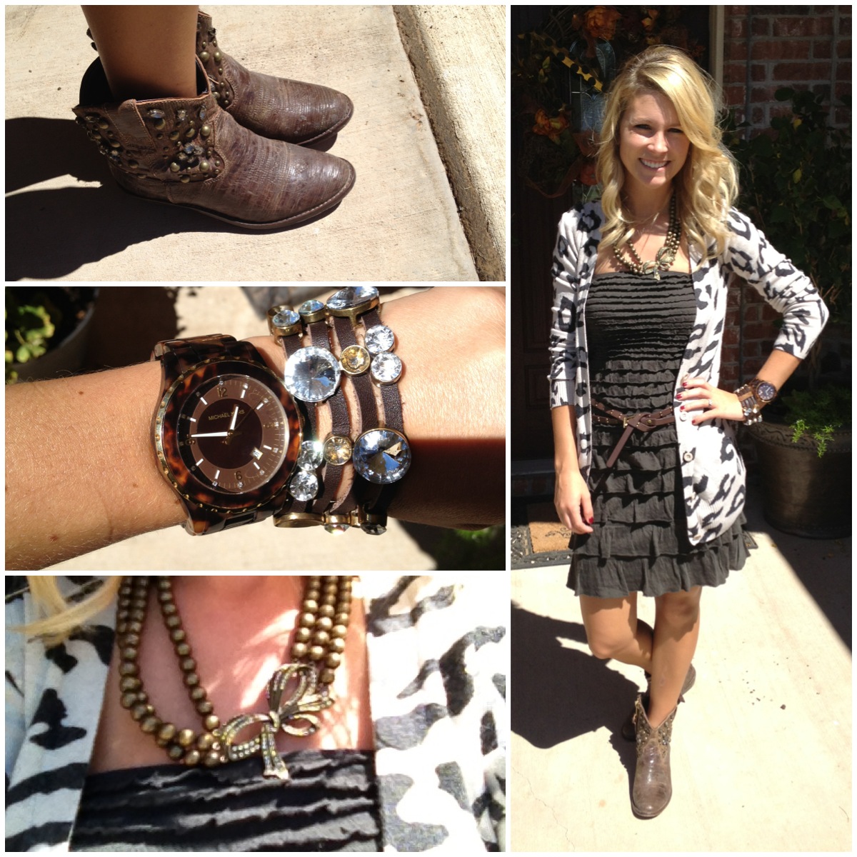 I have been dying to break out my little western booties lately! The weather was cooler this weekend, and I was finally able to wear them to church. I found this dress in my closet and always overlook it because it’s strapless, but a fall color. I paired it with my favorite F21 leopard cardi and will definitely be wearing this little gem more.