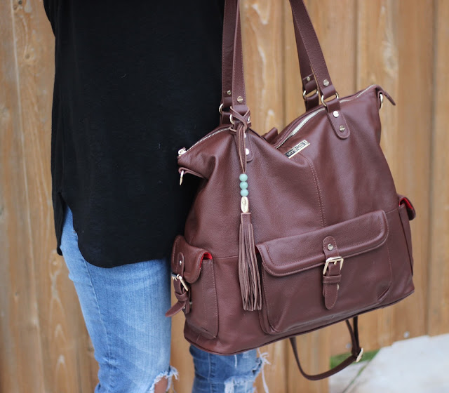 I chose the Megann in Brandy for my bag, but seriously all of them are beautiful. The Caroline in Brandy is also a personal favorite. This bag has the option to be a shoulder bag, backpack or cross body. There are 3 pockets on the outsides which is something I always look for. I never lose my phone or keys because these are their designated homes.