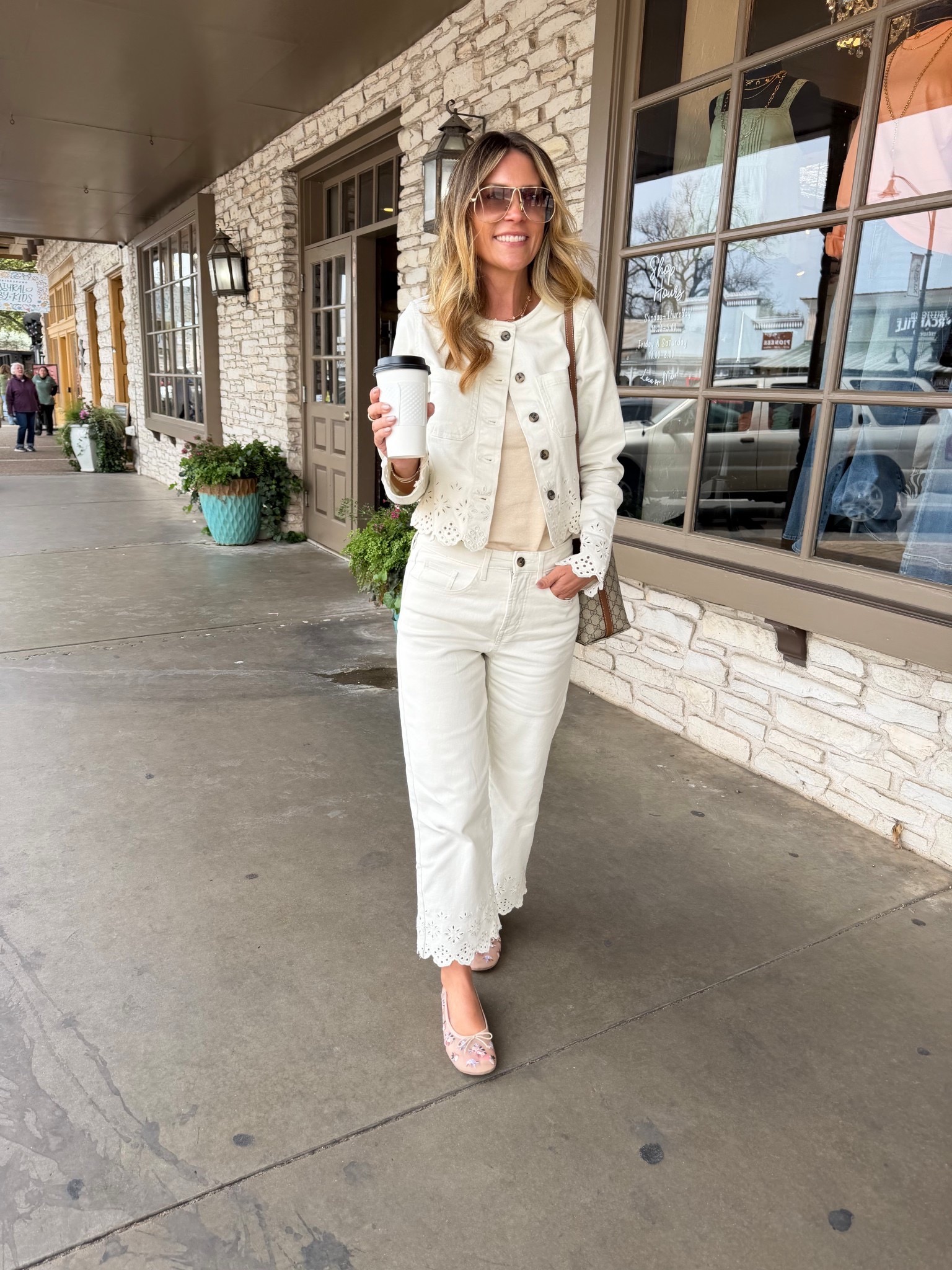 embroidered eyelet jeans These jeans scream spring!! Loving the fun eyelet details!