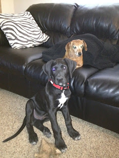 I LOVE him already! I had a Dane as a kid and really wanted one, but our apartment complex would have none of it. Cooper and Tucker would have a good time tho 🙂