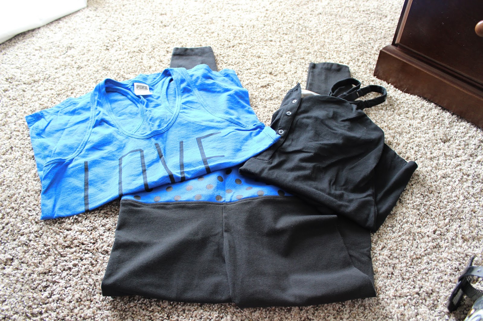 Here is what I’ve got in my bag so far. Minus the things that I use every day…like blowdryer, makeup, straightener, shower things, etc.