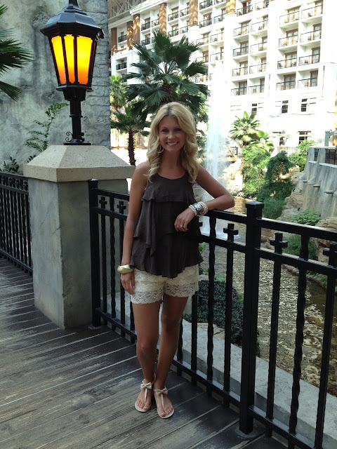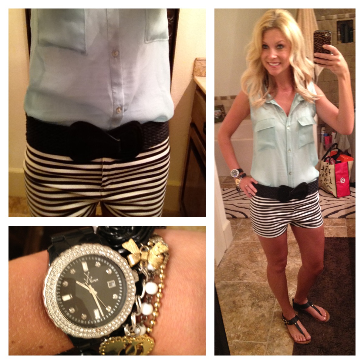 That picture made me laugh out loud! Ha. Love your stripey and lace shorts and of course love your top bun! I'm still working on perfecting mine!