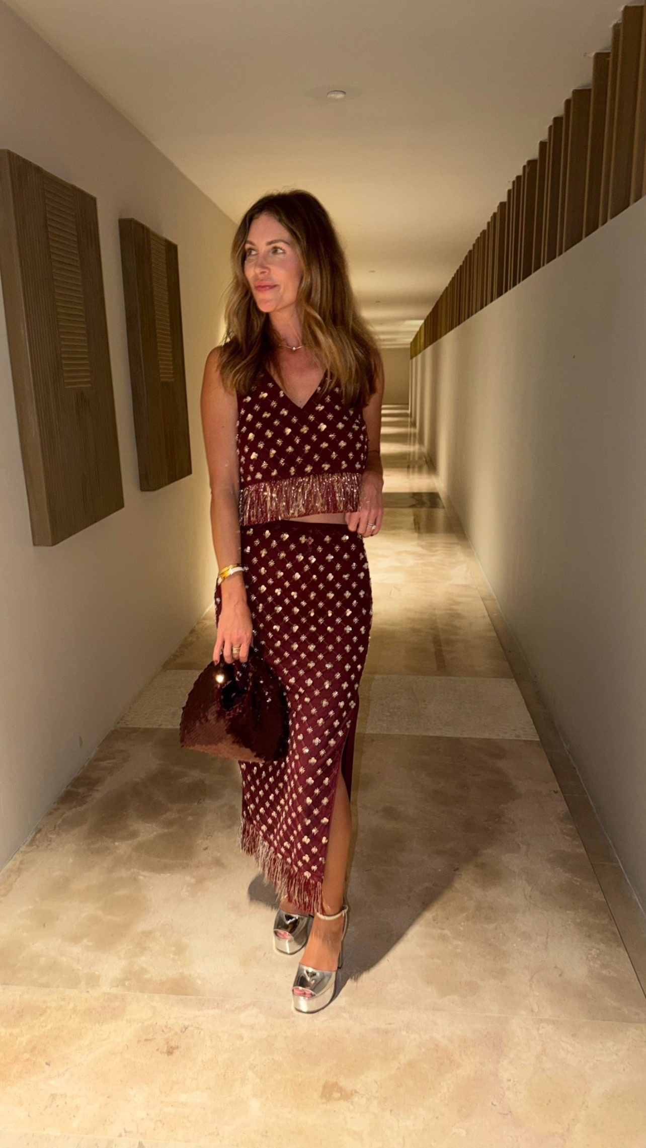Embellished Fringe Crop Top & Midi Skirt Set: