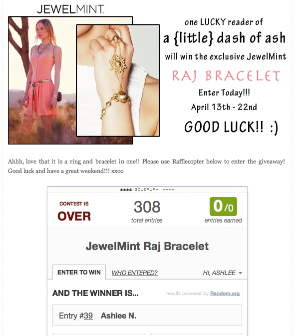 Ashley at [a {little} dash of ash] hosted a Coachella give-away for JewelMint. Guess what? I WON!!!